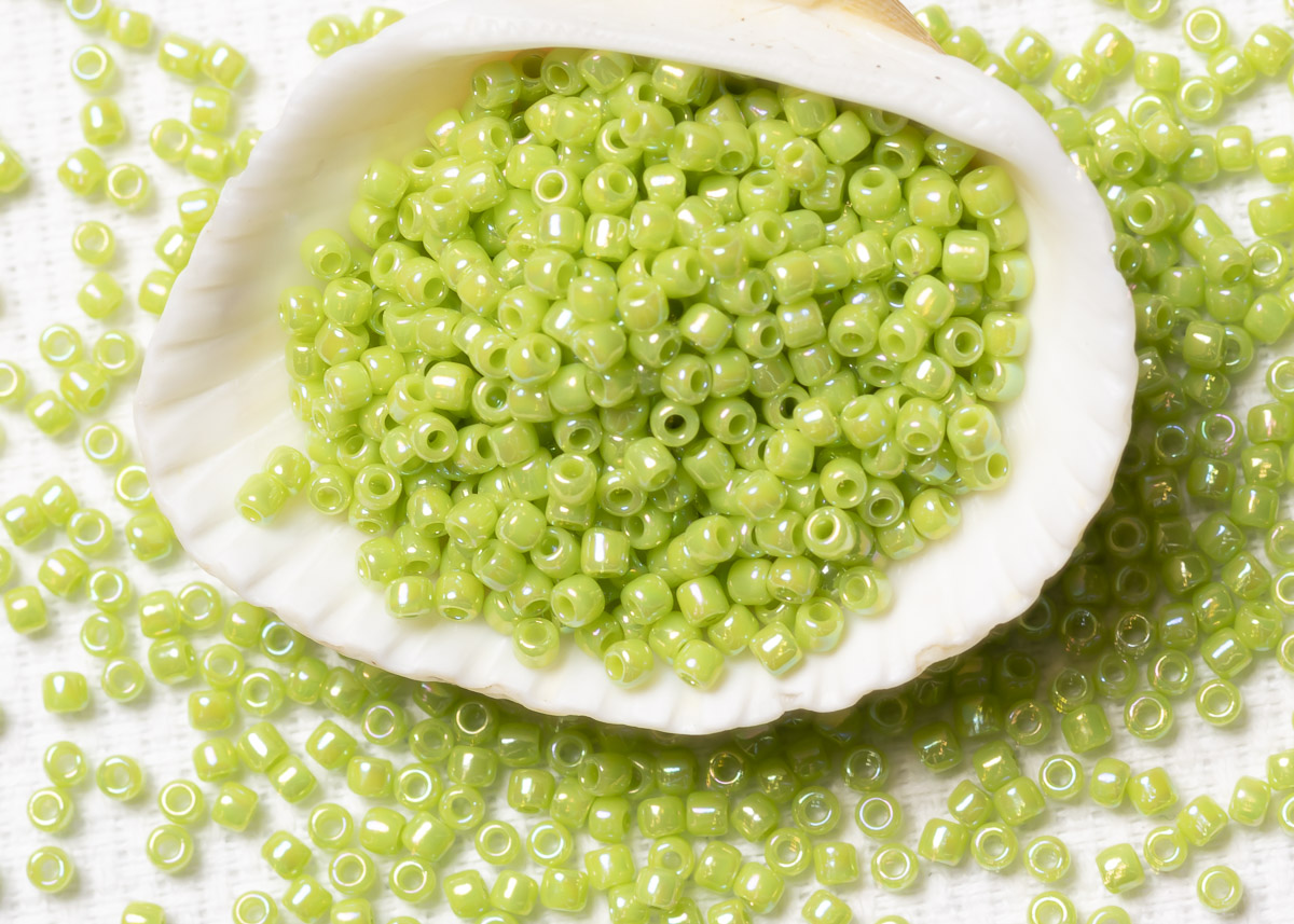 Бисер Япония круглый 11/0 10г 0404 зеленое яблоко, радужный непрозрачный