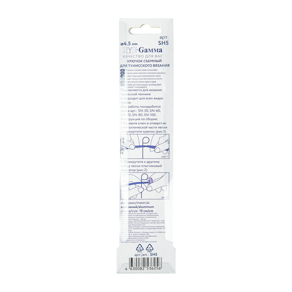 Для вязания " Gamma" SH5 крючок тунисский съемный алюминий d 4. 5 мм 15 см в блистере .